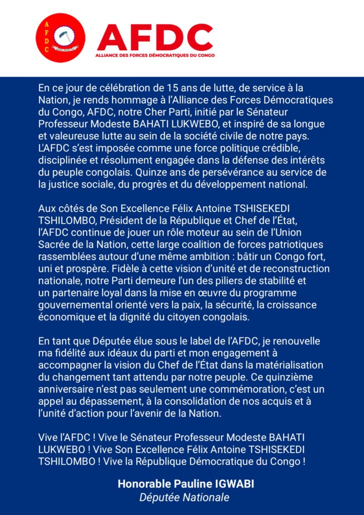 Politique 15 ans de l’AFDC: Nous luttons pour la démocratie et le progrès. Updated on décembre 12, 2025 by Webmaster No Comments on 15 ans de l’AFDC: Nous luttons pour la démocratie et le progrès.